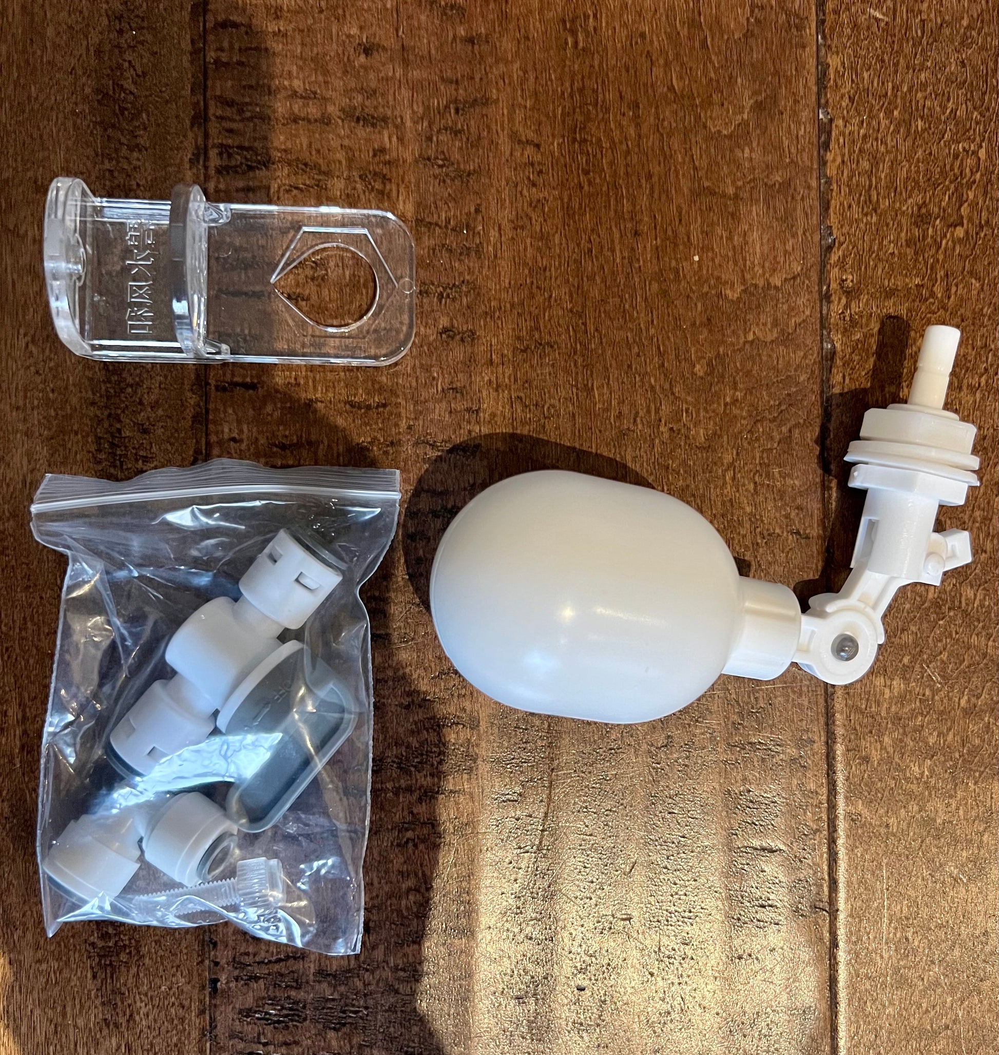 2. Float valve for manual adjustment and top off height (. Just bend the float and hear it click into place, no screws or other tool, no metal screws, no corrosion.